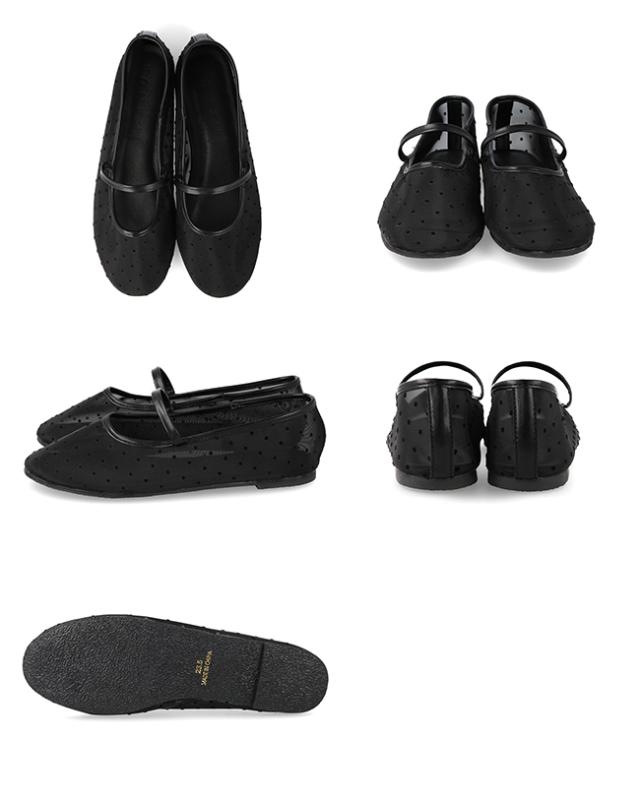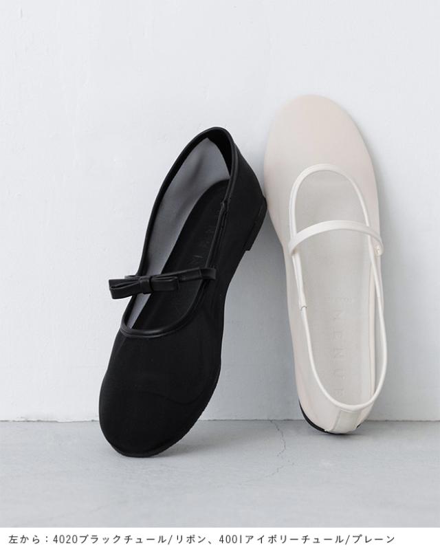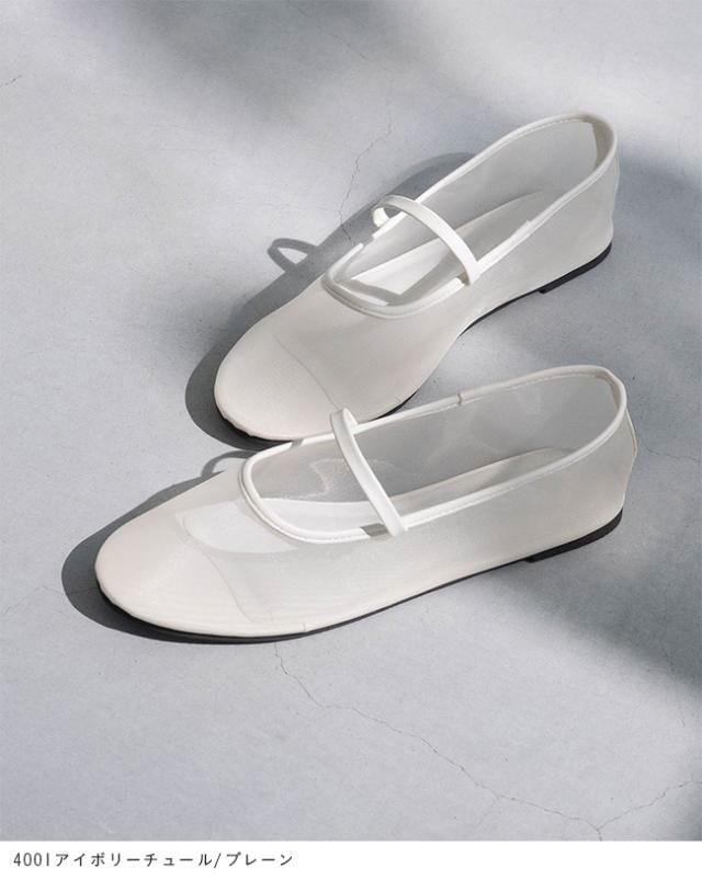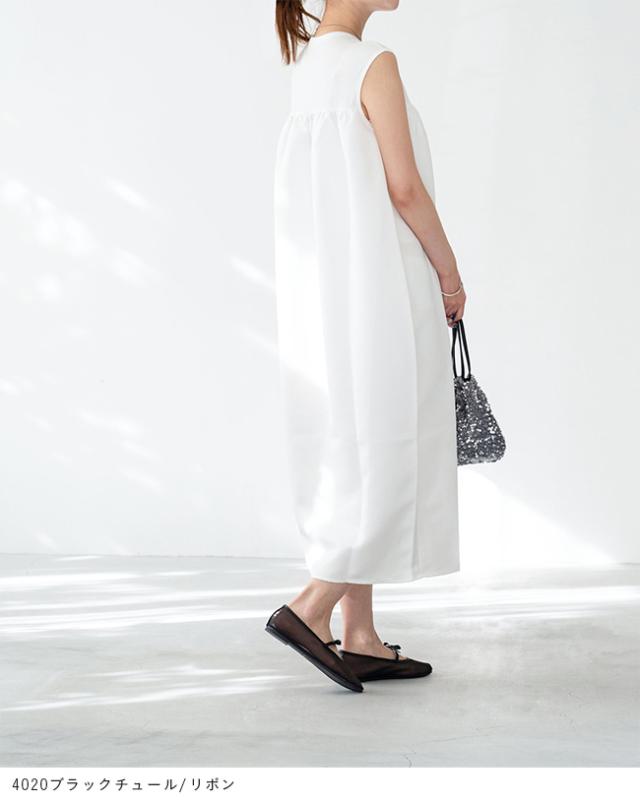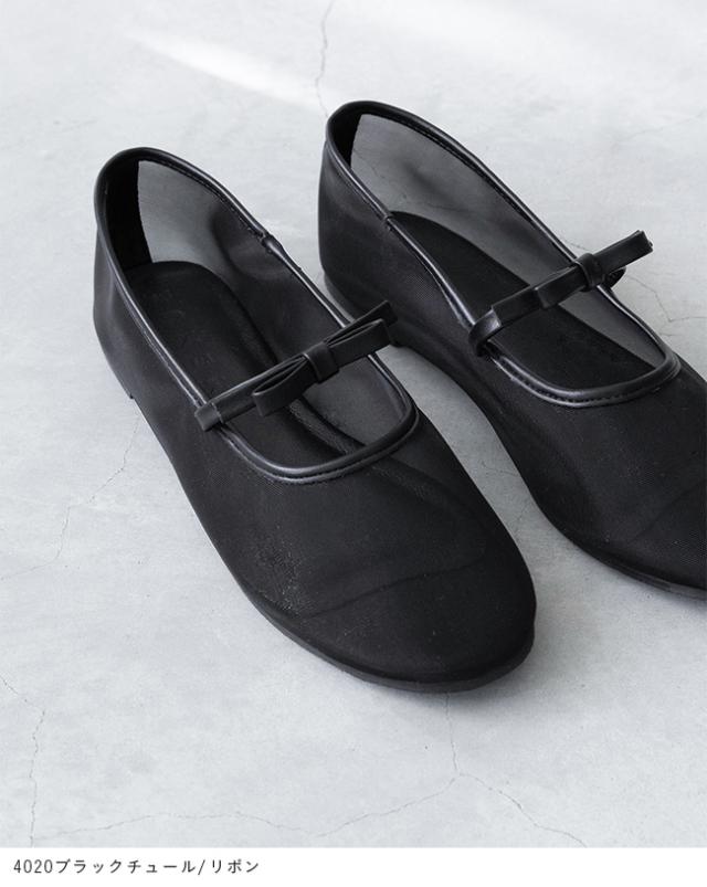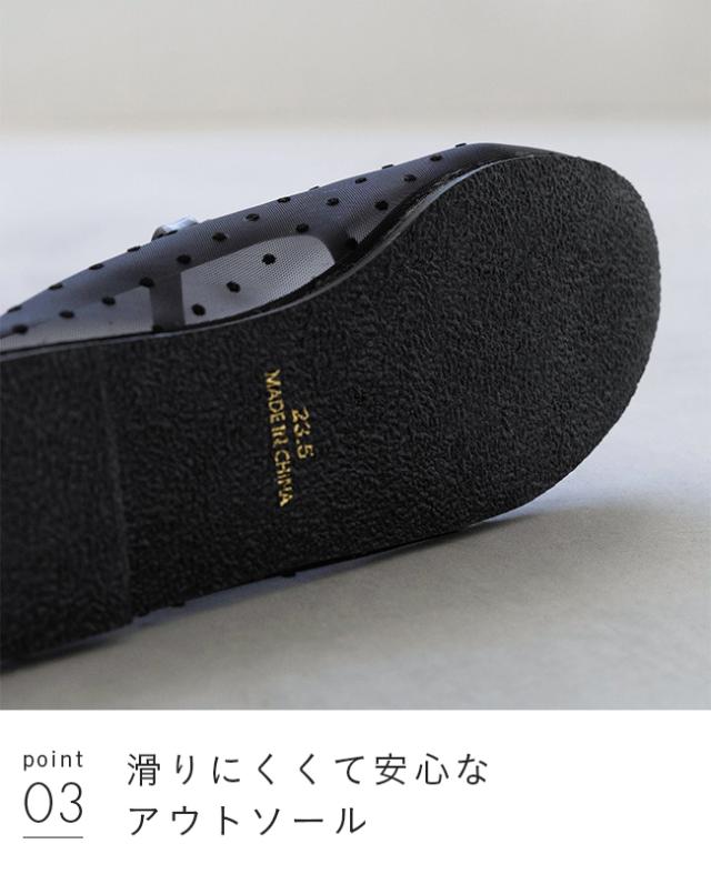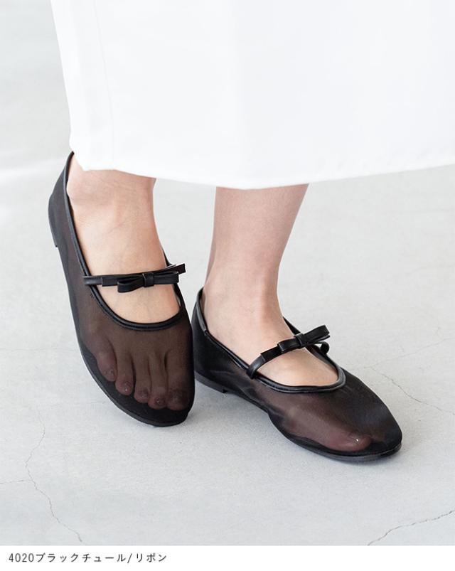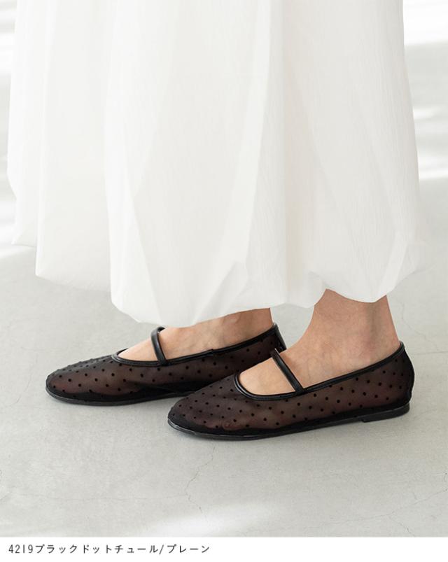 バレエシューズ パンプス レディース フラット 痛くない ラウンドトゥ チュール リボン ドット 黒 送料無料