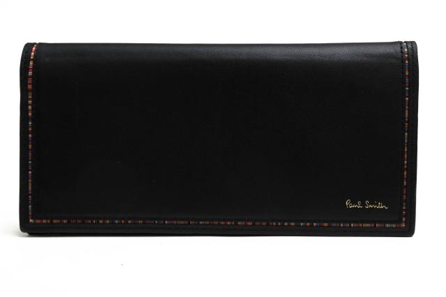 ○ポールスミス Paul Smith 羊革 シープスキン 長財布 BPS273 ストライプインセット 二つ折り 小銭入れあり メンズ 【中古】 中古