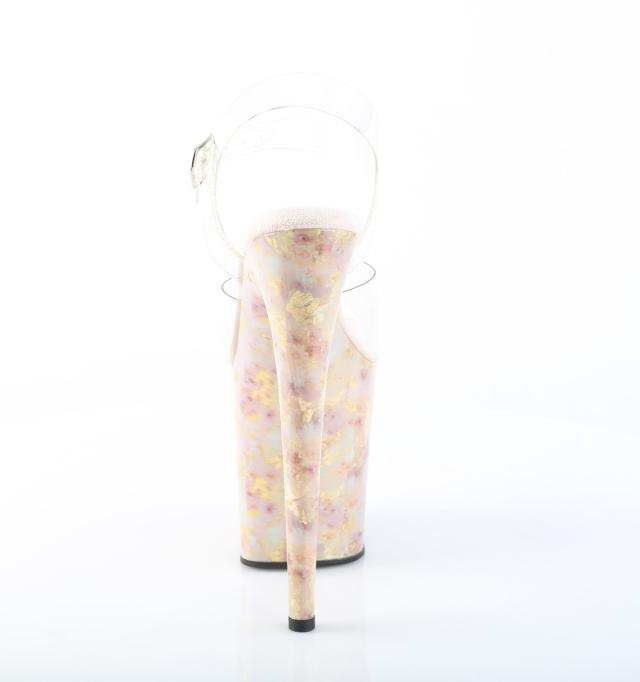 Pleaser(プリーザー) FLAMINGO-808MB 大理石プリント厚底 アンクルストラップサンダル 8インチ(約20cm)ヒール クリア/ブラッシュ−ゴールドマーブル◆取り寄せ