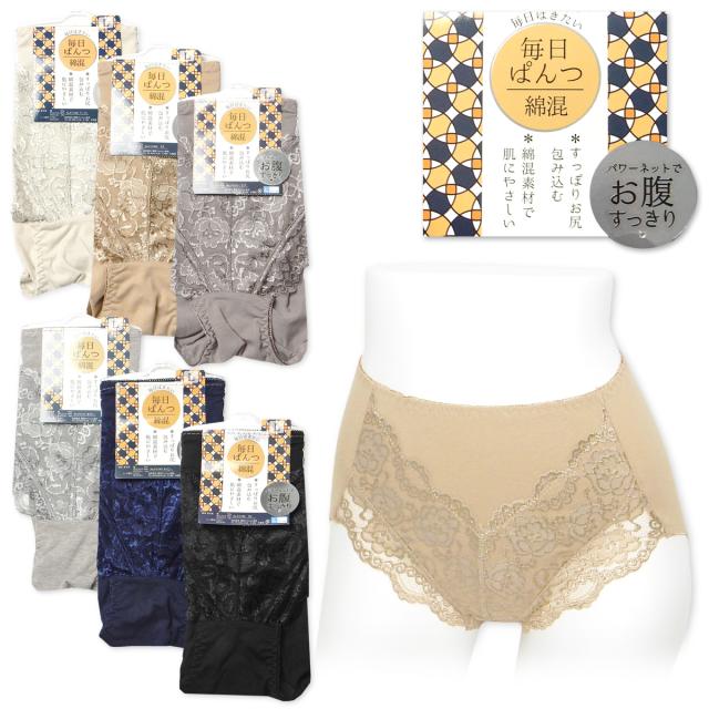 【送料無料】婦人 レディース ショーツ ガードル パワーネットでお腹すっきり ヒップアップ 綿混 360度ストレッチ 1枚履きOK 肌着 下着 インナー M L LL ygf-0057【メール便対応】