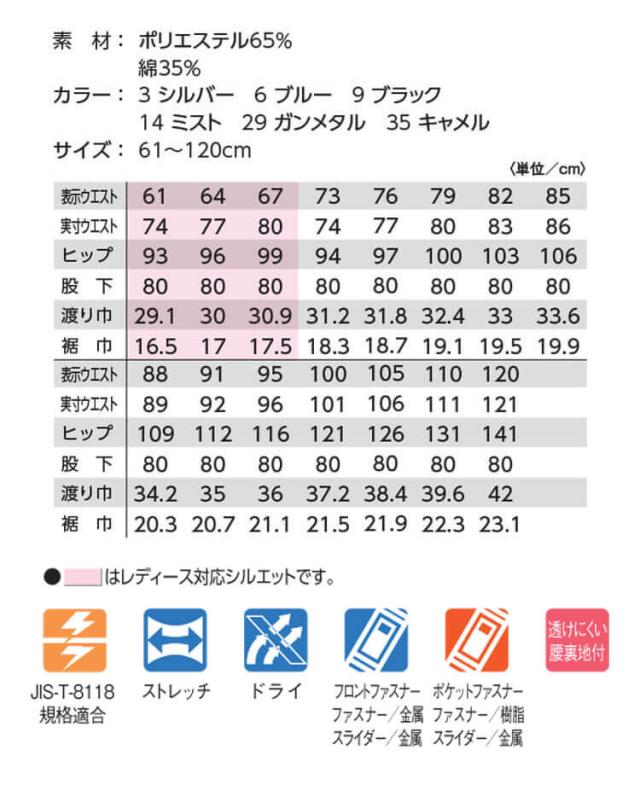 TAKAYA デザインパンツ TW-S131 タカヤ商事 作業服 春夏用 男女兼用 サイズ61-95cm