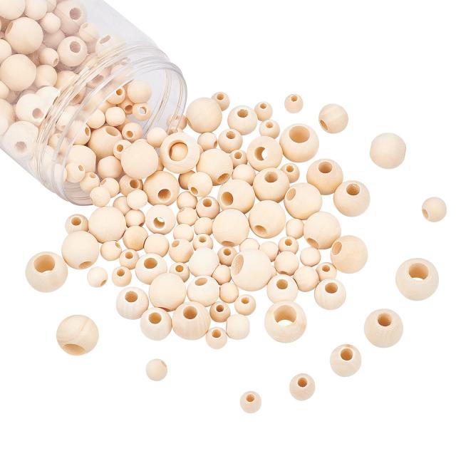 PH PandaHall ウッドビーズ 大穴木製ビーズ 320個 5サイズ ラウンド ナチュラルウッドビーズ ウッドクラフトビーズ ジュエリーブレスレットネックレス マクラメクラフト作り用