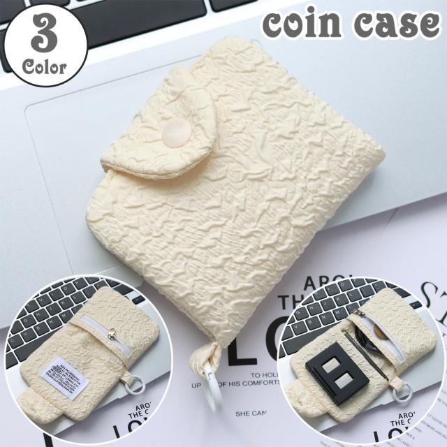 コインケース 小銭入れ ミニ財布 折りたたみ ジッパー ポケット シワ加工 スナップボタン カラビナ付き レディース 女性 婦人
