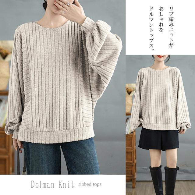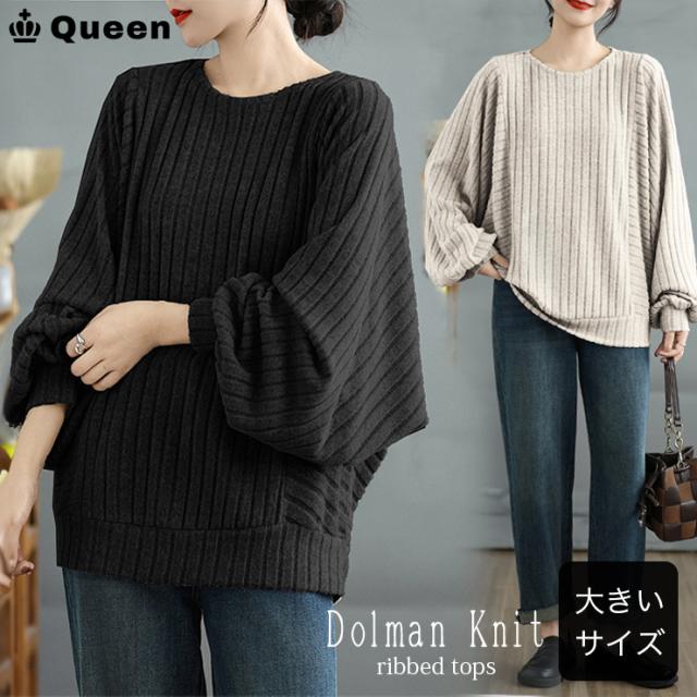 大きいサイズ レディース トップス チュニック ドルマンスリーブ ニット 無地 長袖 春 秋 冬 (31676)