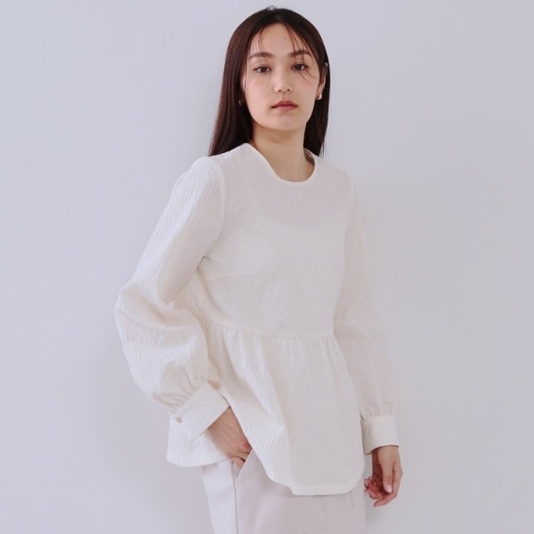 ジャガード素材が華やかなペプラムブラウス