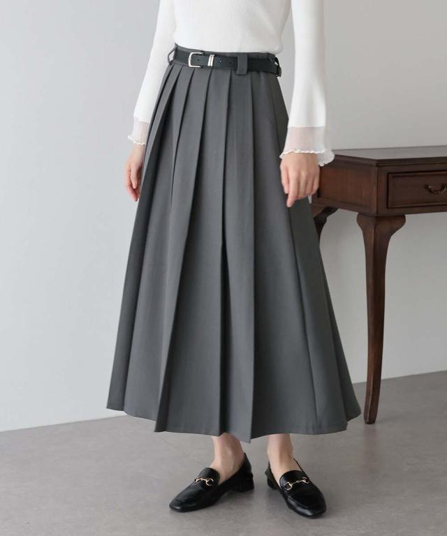 幅広なプリーツが今年らしいロングスカート。