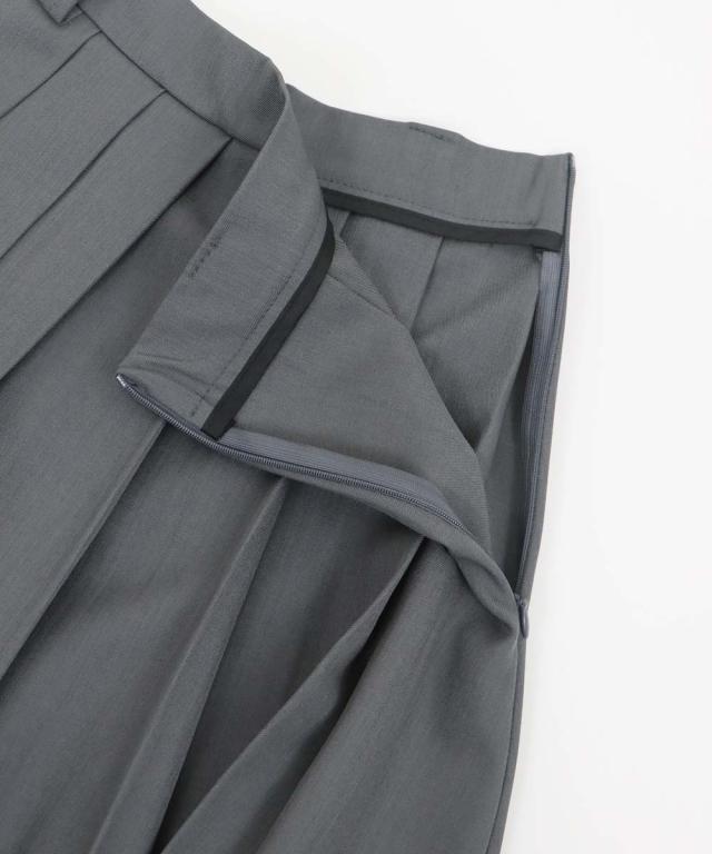 落ち感のある太めのプリーツでスカートに動きを与え、クラシカル&きちんと感のある上品な印象を与えます。