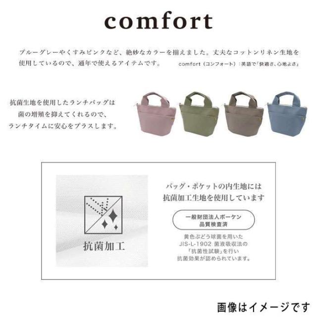 ■商品名:comfort 抗菌ランチバッグ BLUE ランチトートバッグ お弁当バッグ くすみカラー コットンリネン ファスナー開閉 ミニトート バッグ かばん 通勤 通学 レジャー
