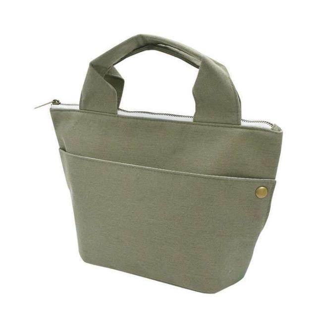 comfort 抗菌ランチバッグ OLIVE ランチトートバッグ お弁当バッグ くすみカラー コットンリネン ファスナー開閉 ミニトート バッグ かばん 通勤 通学 レジャー 現代百貨 A475OL