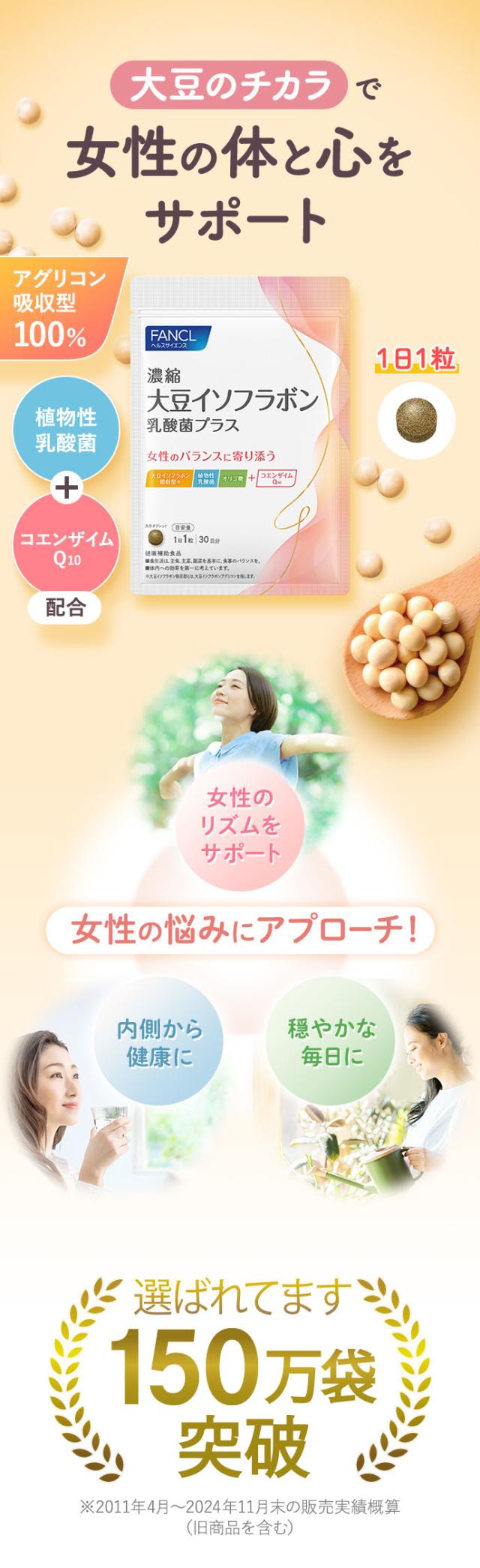 濃縮大豆イソフラボン 乳酸菌プラス90日分 【ファンケル 公式】[FANCL サプリ サプリメント 女性 美容 健康食品 植物性乳酸菌 コエンザイムQ10 健康 サポート 美容サプリ 健康サプリ イソフラボン 大豆 栄養補給 栄養補助 アグリコン吸収型 ]