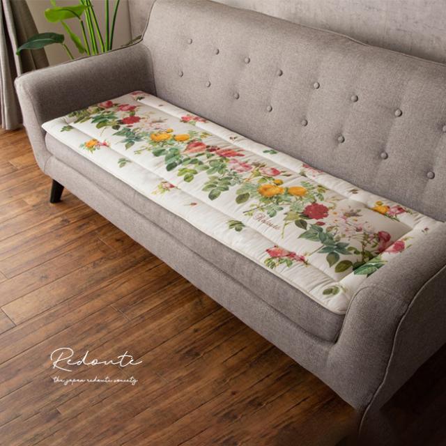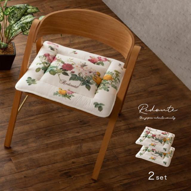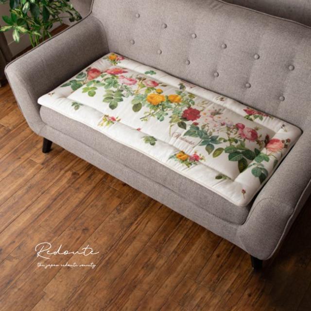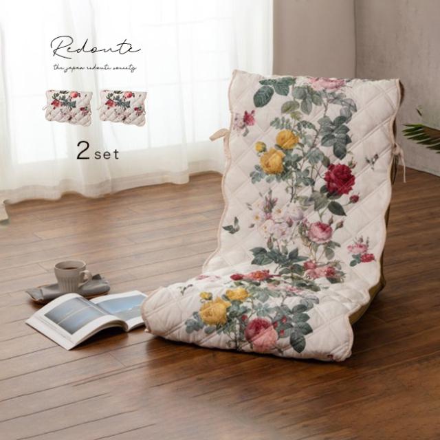 Redoute ルドゥーテ キルト・ワイド座椅子カバー 《2枚》(座椅子カバー キルト キルティング 薔薇 バラ 模様 ローズ 可愛い エレガント 大人可愛い インテリア 座椅子 カバー ハイバック 敷きパッド)