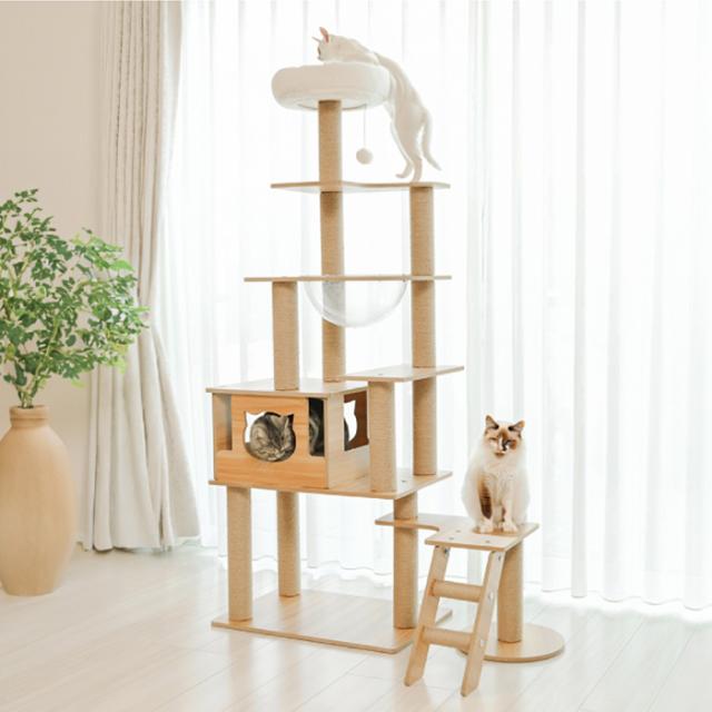 多頭飼いの猫ちゃんにもおすすめな大きい木製キャットタワー