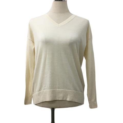 【中古】プラステ セーター ニット プルオーバー Vネック ウール 無地 長袖 M ベージュ 白 ホワイト レディース