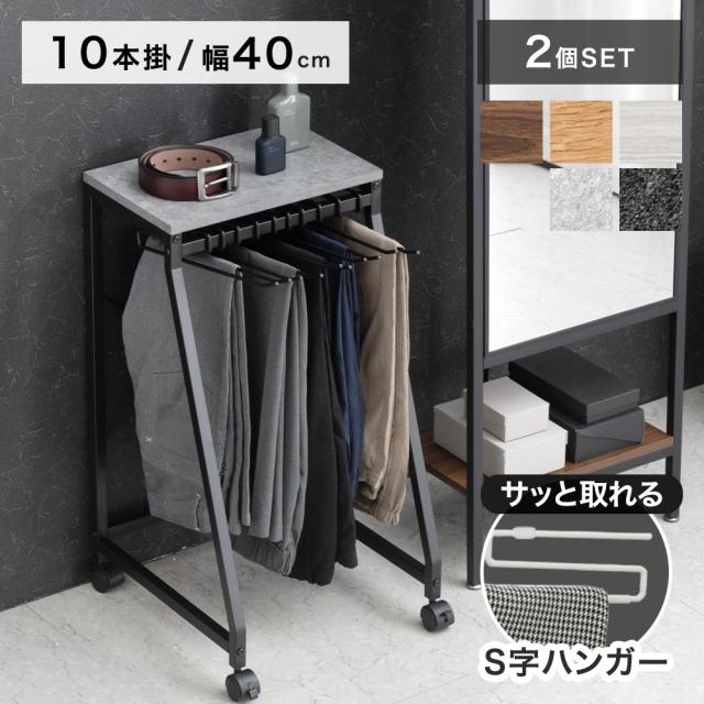 スラックスハンガー 10本掛け 2個セット コンパクト スリム パンツラック ズボンハンガー ボトムスハンガー パンツ収納 衣類 収納 クローゼット タオルハンガー ラック パンツ スラックス ズボン キャスター付 シンプル おしゃれ