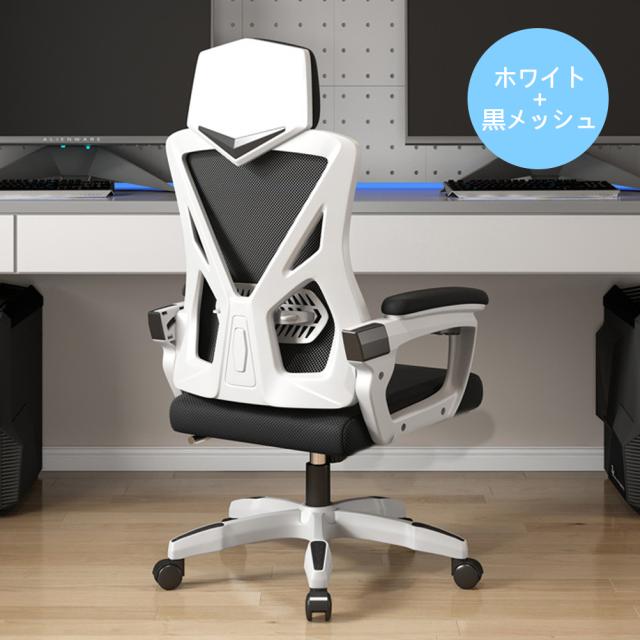 オフィスチェア素材/材質 スパンネット布色ホワイト-黒メッシュ / ブラック-黒メッシュサイズ幅60x奥行54〜89x高さ117〜125cm座面の高さ:41〜49cmご注意事項※お客様組み立て式です。※使用環境によりキャスターの潤滑具合が悪くなることがあります。※光の当たり方や強さにより、生地の色が違って見えることがあります。その他商品説明・腰への負担を軽減する腰サポートクッション付・床を傷付けにくいPUキャスター・通気性に優れたプロ仕様の競技用メッシュ採用・上半身をしっかり受け止めるハイバック・座ったまま伸びが出来るロッキング機能
