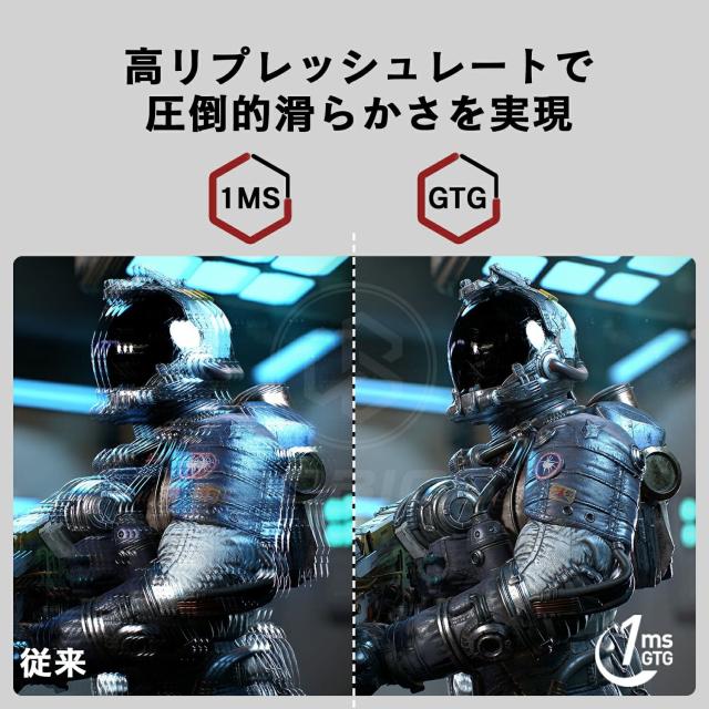 | 特徴 | ■ 1ms(GTG) OverDriveを最大にしMPRTをONにすることで1ms(GTG)の応答速度を実現。 素早いアクションが残像を感じることなくゲームがよリ一層滑らかになります。 ■ 200Hz 1秒間に最大180フレームを描写することができ、一般的なゲーミングモニターと比較しても一段上の滑らかな映像が出力されます。 ■ 112% sRGB sRGBカバー率112%は、ゲーマーだけでなくプロのグラフィックデザイナーにとっても充分に満足いただけるスペックです。 ■ IPSパネル IPSパネルは鮮明な黒と豊かな色彩によリ驚くべきコントラストを表現します。 広い視野角は、どの方向から視聴しても同じ色感を共有できます。 ■ FreeSync ティアリングやスタッタリングを軽減し、ズレや遅れを抑え、アクション性の強いゲームでも快適にプレイできます。 ■ FIickerFree(フリッカーフリー) 目の疲れや頭痛の原因とされる光のチラつきを抑え、目にかかる負担を大幅に軽減します。 ■ ブラックイコライザー ゲーム中の見えにくい暗所を明瞭に映し出すことで、隠れている敵や障害物を素早く見分けることができます。 ■ プリセット設定 5つのプリセット設定を選択可能。 ゲームのジャンルに合わせたFPSやRTSの設定の他に、映画や画像加工用などが選べます。 ■ 入力端子 ・HDMI 2.0 ×1 ・DP 1.4 ×1 ・イヤホンジャック ×1 PS4やNintendo Switch、Xboxなどのコンシューマータイプのゲームにも、HDMIポートで接続できます。 ■ ブルーライト軽減機能 目の疲れの原因とされているブルーライトを軽減します。※青色の光をカットするため、機能をONにすると黄色味がかって見えます。 ■ VESA対応 VESA標準規格の75×75mmに対応。さらに、同梱のVESAマウント使用で100×100mmにも対応可能!スタンドを外して壁掛けやモニターアームを取り付けられます。 |