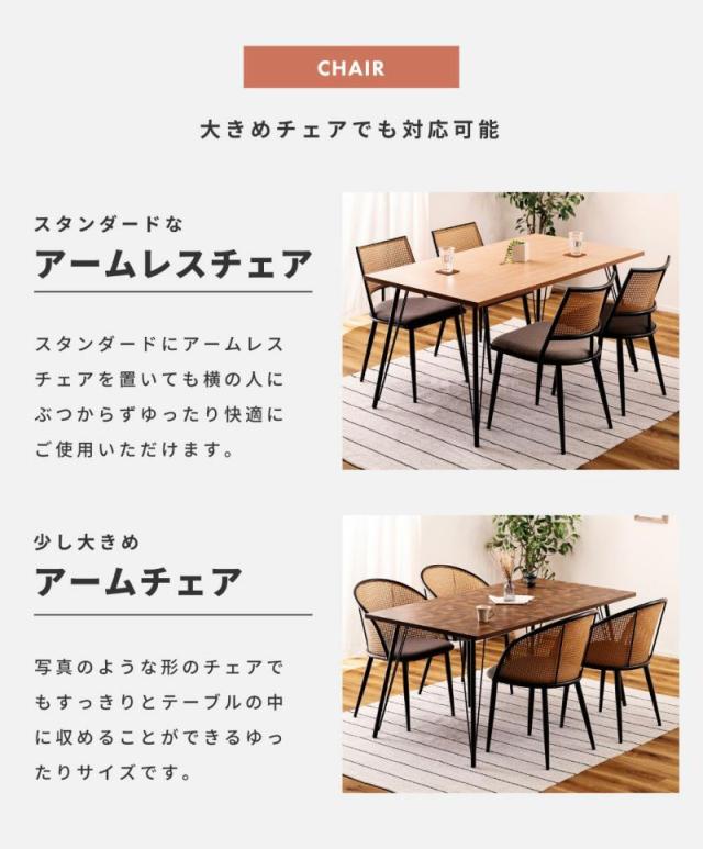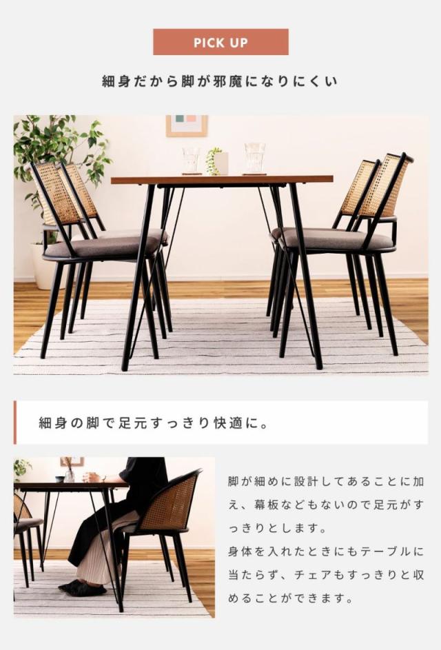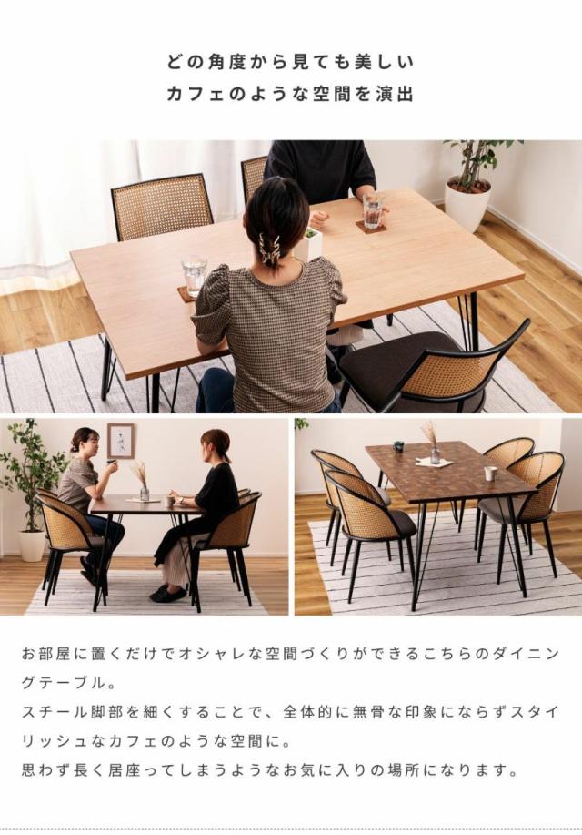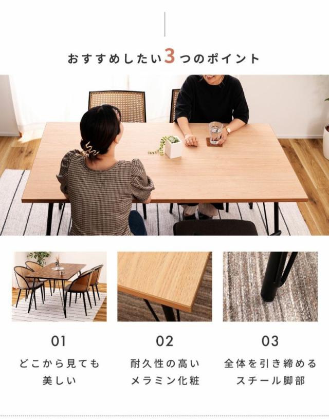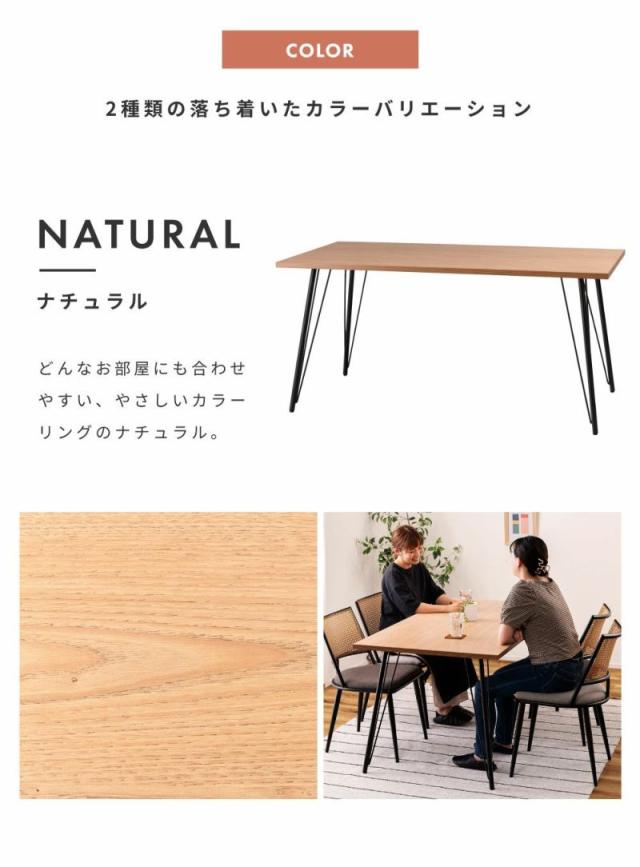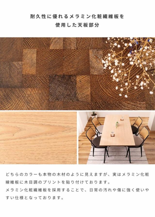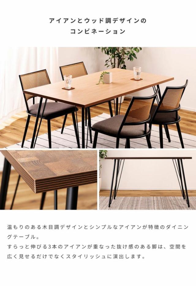 | 説明 | 温もりのある木目調デザインとシンプルなアイアンが特徴のダイニングテーブル。3本のアイアンが重なった抜け感のある脚は空間を広くスタイリッシュに演出。 天板には木目調のメラミン化粧合板を使用。耐久性が高く汚れにも強いので、お手入れも簡単で衛生的。 |
