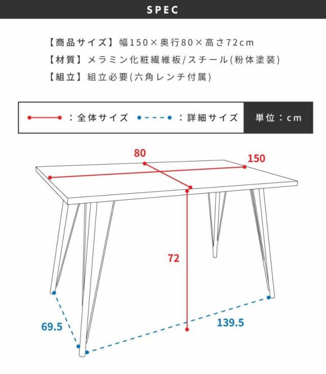 | サイズ | サイズ:幅150×奥行80×高さ72cm |