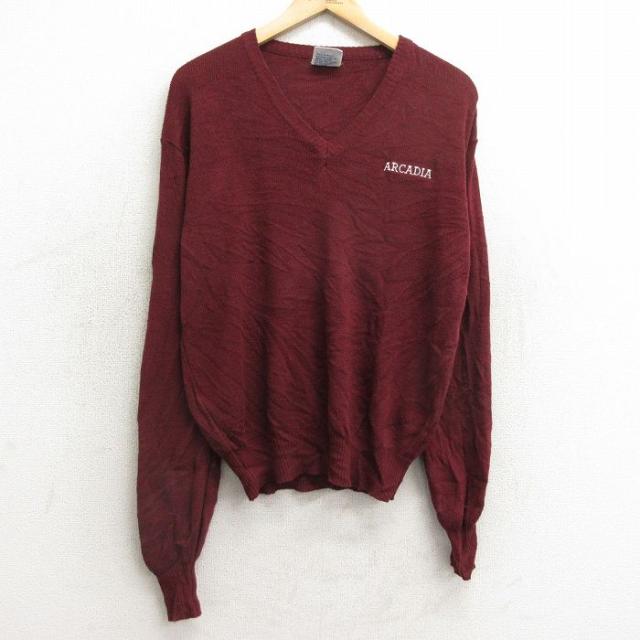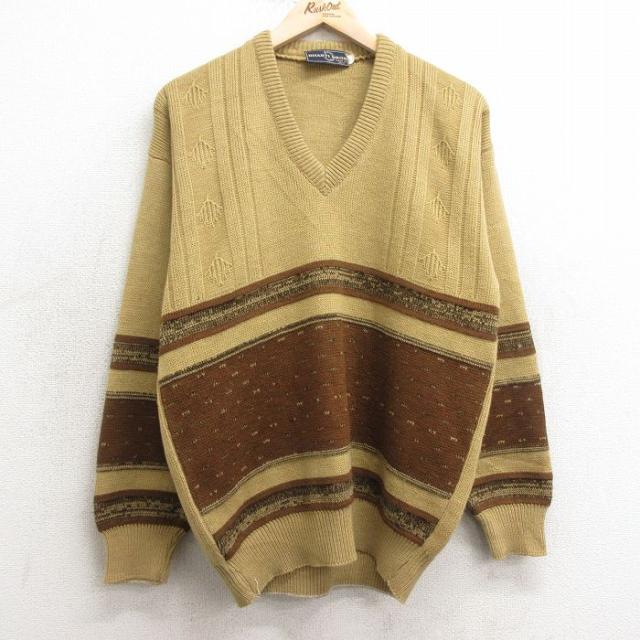 古着 長袖 セーター メンズ 90年代 90s Vネック ベージュ系他 カーキ Mサイズ 中古 ニット トップス 中古 古着