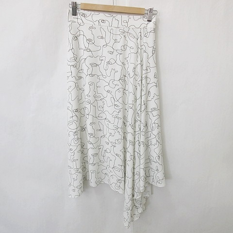 【中古】インディヴィ INDIVI スカート フレアー ロング 総柄 プリント 白 黒 ホワイト ブラック 36 レディース