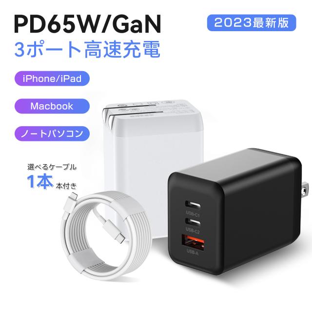 【選べるケーブル1本付】usb コンセント acアダプター pd 充電器 タイプc 急速充電器 65W 折畳式 3ポート スマホ ノートパソコン対応 超コンパクト 軽量 PSE認証