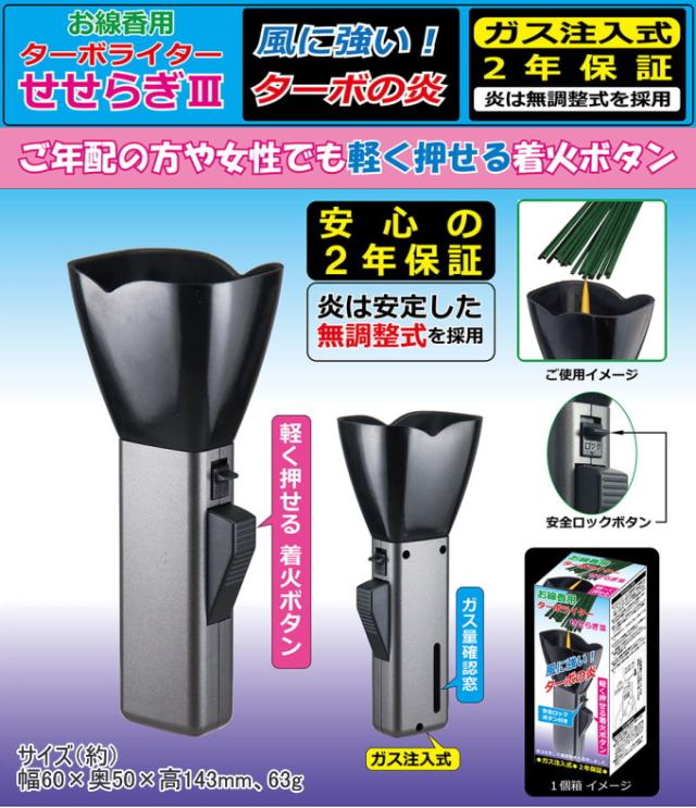 お線香用ターボライター せせらぎ3 着火 ライター ターボライター お墓参り 墓参り 仏事 お線香用 お線香 線香 安全ロック付 ガス注入式