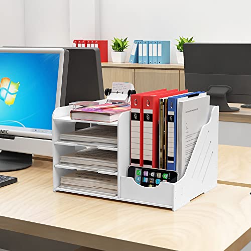 卓上収納 ラック A4ファイルラック 組み立て式 プラスチック デスク上置き棚 新聞/雑誌/フォルダー/書類入れ レターケース 机上用品 書類ケース整理 収納 オフィス 寝室 リビング収納 (4仕切り)