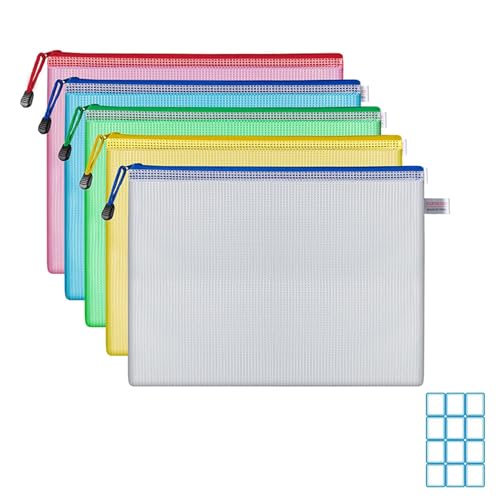 ジッパー式ファイル袋 A5 10個入り クリアファイル5色 メッシュファイルバッグ ラベルシール付き 大容量 半透明 ドキュメントファイル ファスナーポーチ 撥水 網目 ファイルケース 連絡袋 領収書ファイル 書類整理 オフィス 学校 学