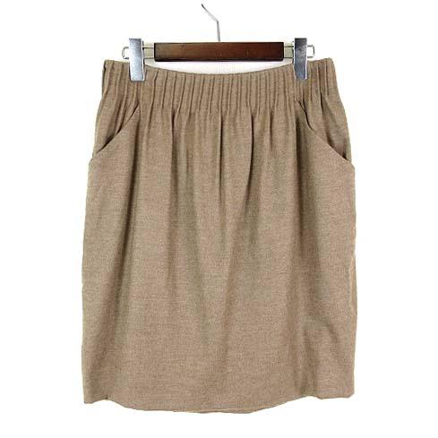 【中古】デュアルヴュー DUAL VIEW スカート ウール ギャザー ストレッチ ひざ丈 XL 42 杢ベージュ 大きいサイズ