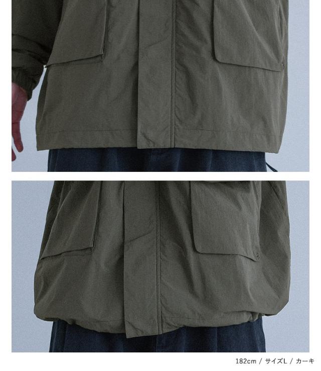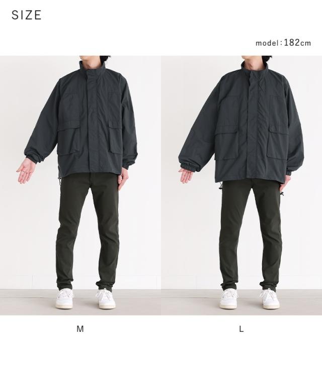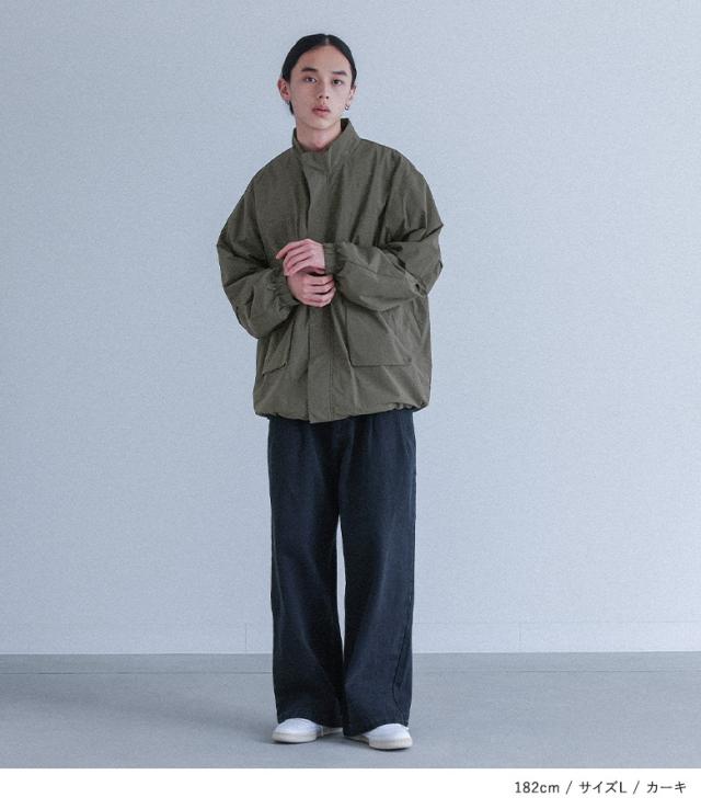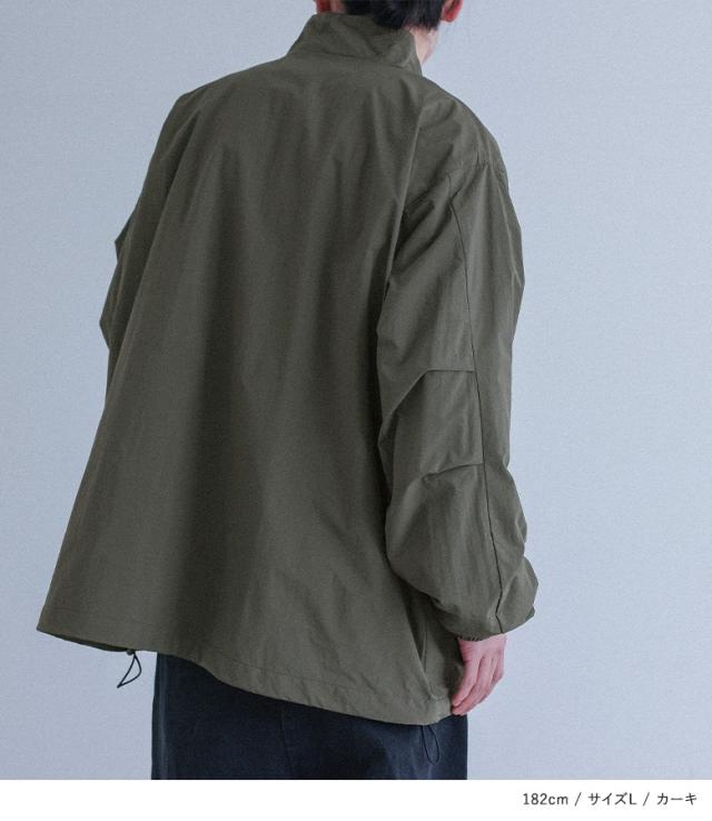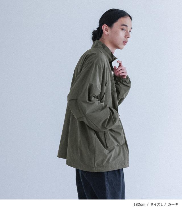 ■デザイン 季節の変わり目にさっと羽織りやすいスタンドネックナイロンジャケット。胸ポケットとフラップポケットが一続きになったデザインと、後袖にはタック入りでボリュームのあるシルエットがヒトクセ効いたデザインです。 ■ディテール ・裾はドロスト入りでシルエットを変えられる仕様 ・前ファスナーとドットボタン付き ■コーディネート どんなスタイリングにも合わせやすい着回し力抜群のアイテム。デニムに合わせてカジュアルにも、スラックスと合わせてきれいめカジュアルにも、同素材のボトムと合わせてスポーティーにも着られるのでコーディネートの幅が広がります。羽織りとしても、前を全て閉めてトップス風にもご着用できます◎ ■素材 シャカシャカとした質感でハリ感のあるマットなナイロン生地。裏地にはメッシュ素材を使用しており、軽やかな着心地です。 |