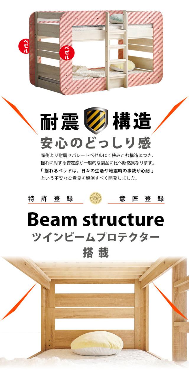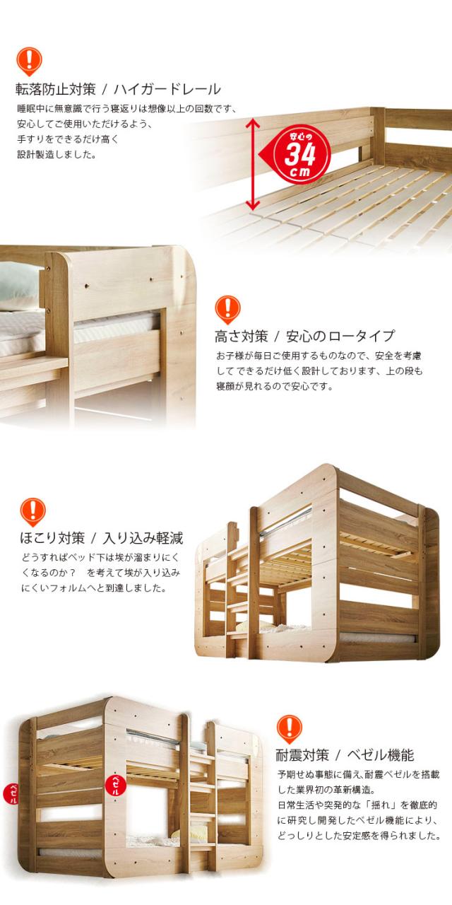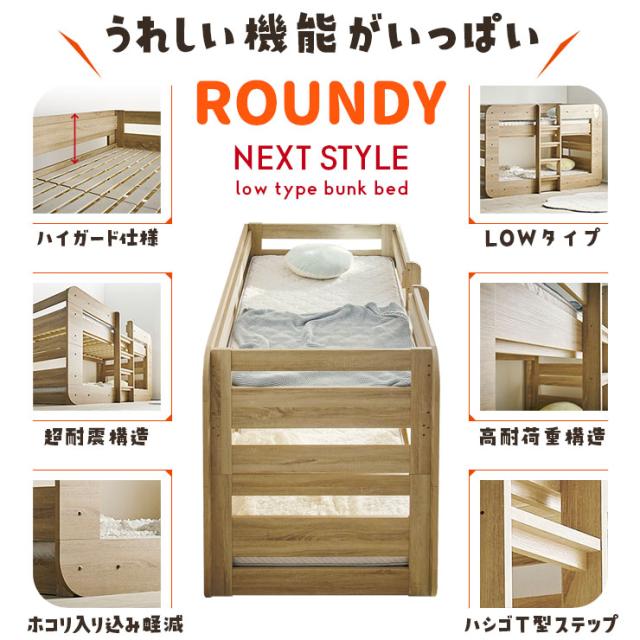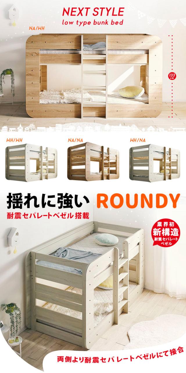 【特許/超耐震構造】二段ベッド 2段ベッド シングルサイズ ROUNDY(ラウンディ) 4色対応 ロータイプ すのこベッド フレームのみ 単品 分割 シンプル ベッド 子供 キッズ おしゃれ 子供部屋 入学祝い