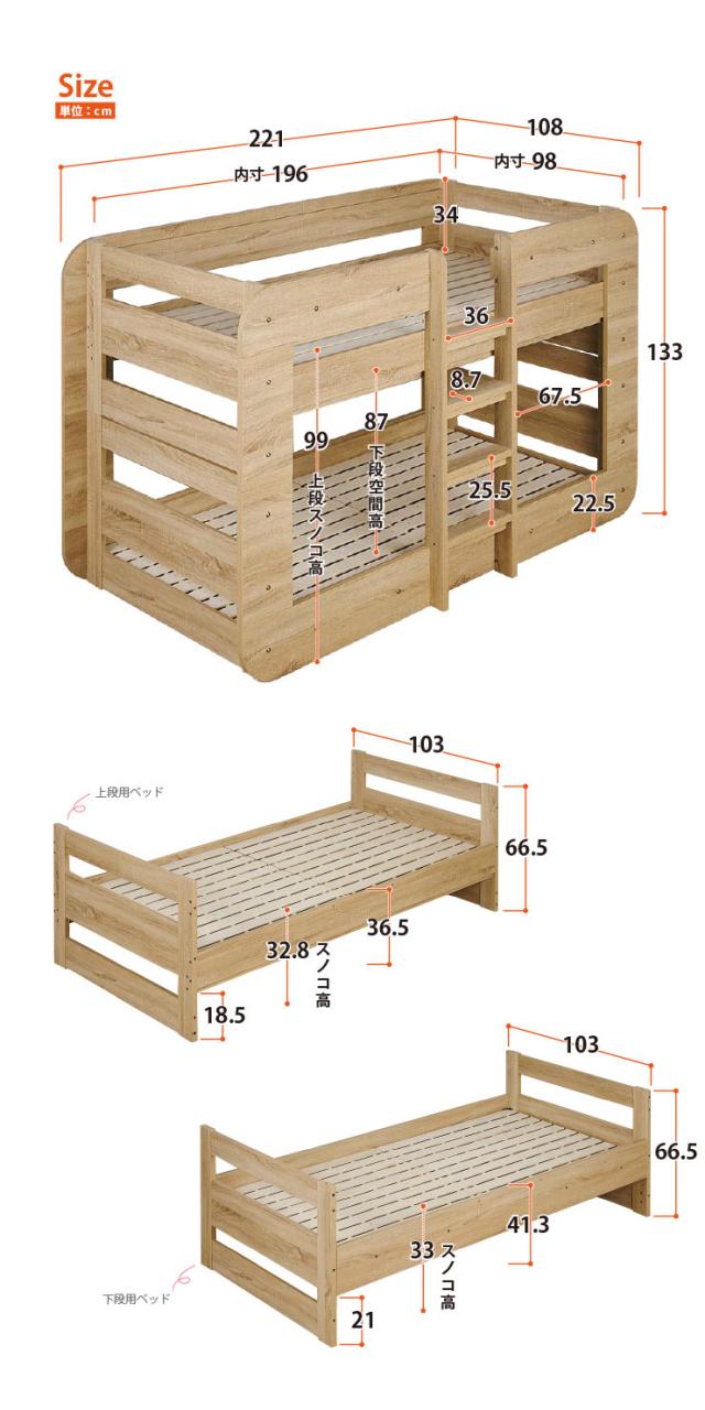 ベッド内寸:196 x 98cm