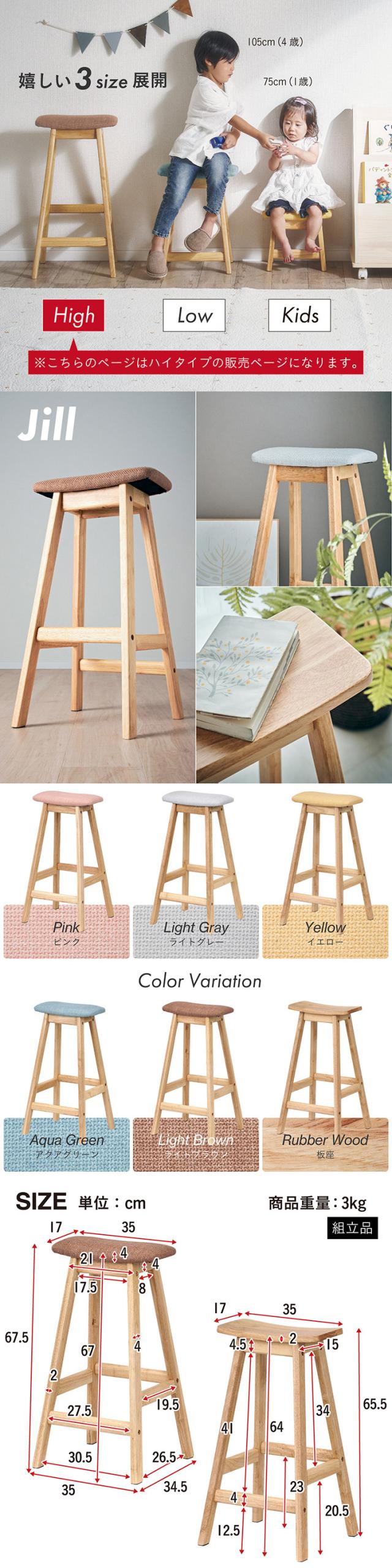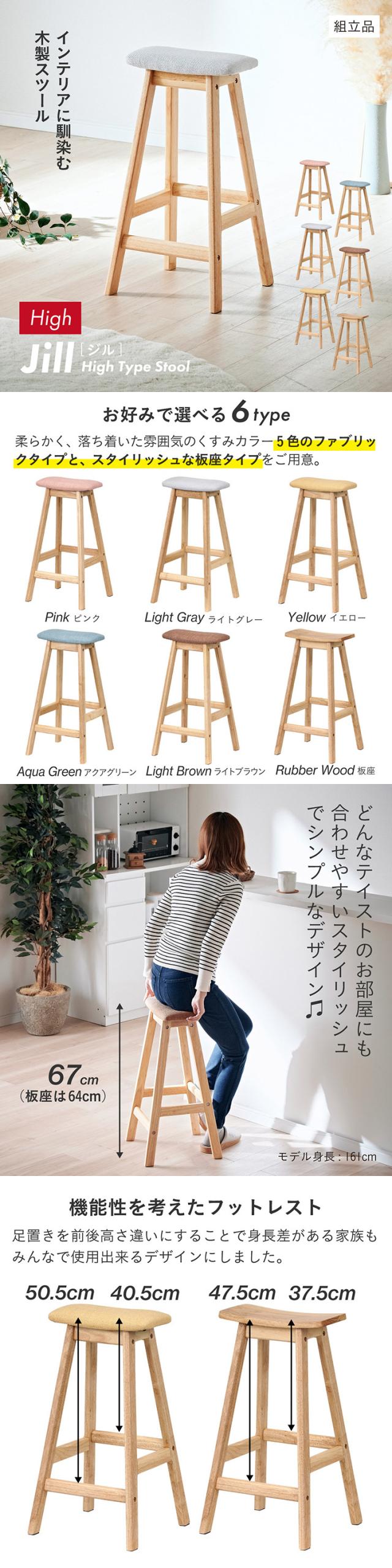 スツール 木製 おしゃれ 北欧 シンプル Jill(ジル) Highタイプ オットマン 椅子 チェア 足置き ウッドスツール ハイスツール ハイタイプ 6色対応 ファブリック 板座 天然木 ハイチェア カウンタースツール カウンターチェア