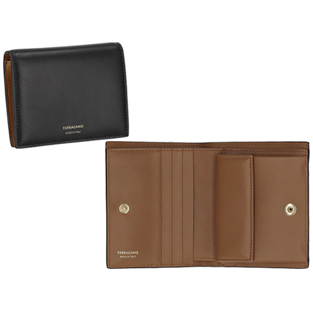 フェラガモ 二つ折り財布 レディース ブランド Ferragamo 220699CALF NE NC 775 326 ブラック/ブラウン