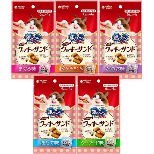 ペットフード 猫 キャットフード 銀のスプーン お魚味クッキーサンド 24g 猫 キャットフード ユニチャーム まぐろ チキン かつお ほたて シーフード クッキー おやつ 小分け スナック 間食