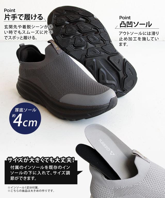 gerry スリッポン メンズ 厚底 スニーカー ブランド 軽量 履きやすい メッシュ カジュアルシューズ 厚底シューズ 疲れにくい ジム フィットネス スポーツ シンプル 黒 無地 通気 軽量 黒 ブラック グレー ジェリー 6584