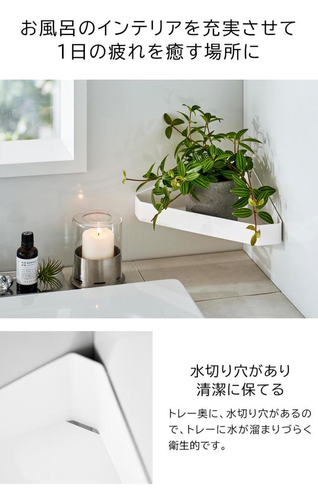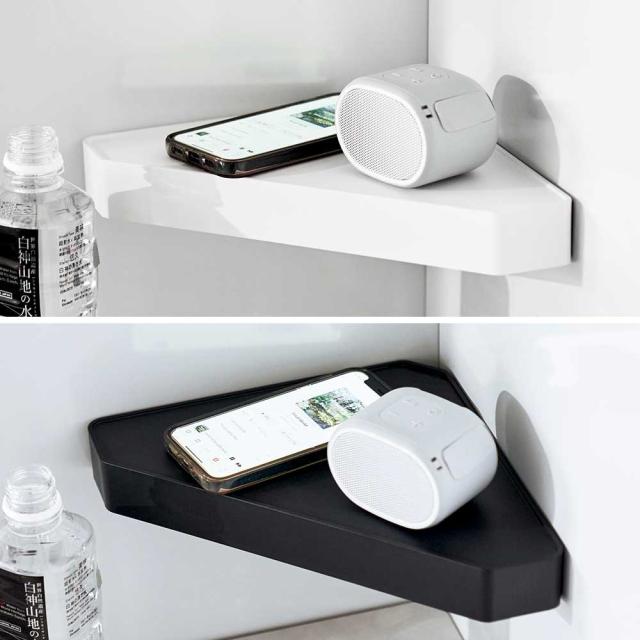 バスルームに植物を置いたり、スマートフォンで動画鑑賞をしたり、マッサージをしたりなど、一日の疲れを癒すためにとても大切なバスタイム。手の届く範囲に癒しグッズを置けるスペースがあると、さらに快適になりますね。リバーシブルマグネットバスルームコーナーラックは、マグネットで簡単に設置でき、移動も簡単なのでお好みの高さに自由に取り付けできます。また、裏表のないリバーシブルタイプなので、置く小物によってフラットな棚とホールド感のあるトレーと2通り使用可能です。トレー奥には穴があり水切れしやすいのでラックを清潔に保てます。お風呂の癒しグッズを充実させてリラックスできるバスルームをつくり、より上質なバスタイムをお楽しみください。