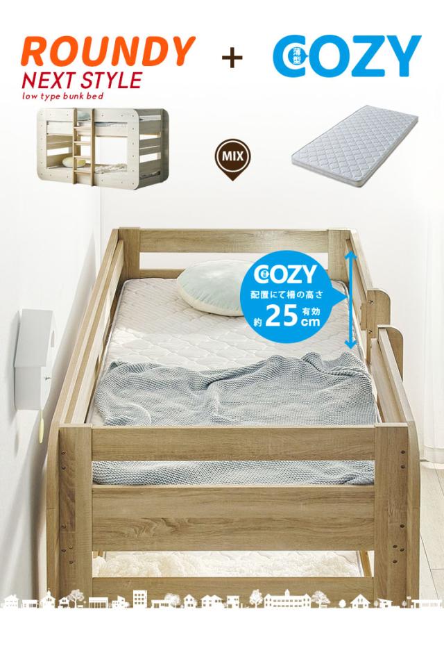 【特許/超耐震構造】二段ベッド 2段ベッド シングルサイズ ROUNDY(ラウンディ) + マットレス COZY Sサイズセット 4色対応 ロータイプ すのこベッド 分割 マットレス ベット おしゃれ 子供部屋 入学祝い