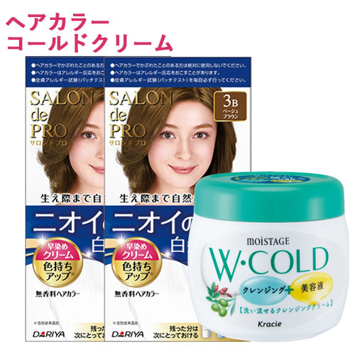 サロンドプロ 無香料ヘアカラー 早染めクリーム 白髪用 3A 明るいアッシュブラウン 2個&モイスタージュ Wコールドクリーム 270g SALON de PRO ダリヤ(DARIYA) MOISTAGE クラシエ(Kracie)【送料込】
