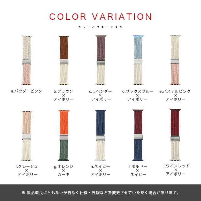 ワンタッチで簡単に装着できる伸縮性抜群のナイロンバンドです。編み込み模様とツートンカラーの組み合わせがカジュアルでお洒落な印象を演出。柔らかなくすみカラーと優しい配色で、女性らしい上品なデザインに仕上げました。