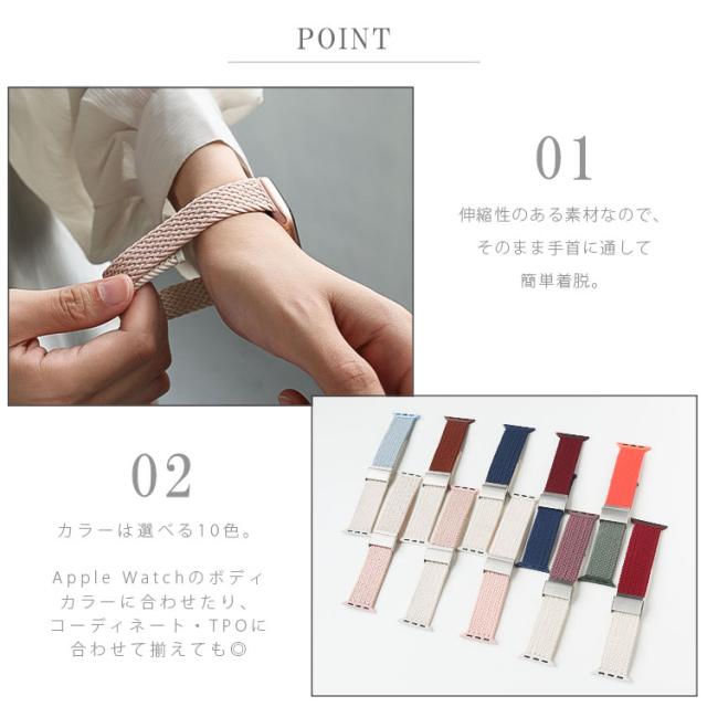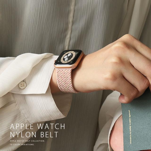 アップルウォッチ バンド ストレッチベルト ワンタッチ ナイロンベルト series 9 8 7 6 SE 5 4 3 2 1 38mm 40mm 41mm レディース 女性用 スリム フリーサイズ くすみカラー サードパーティ おしゃれ ab-wc010