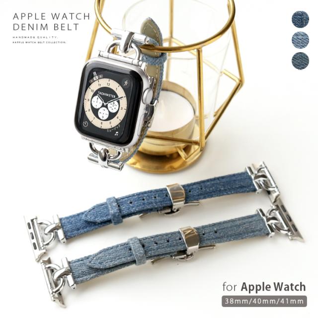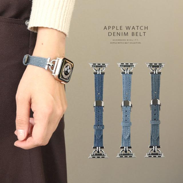 アップルウォッチ バンド デニム生地 スリム series 9 8 7 6 SE 5 4 3 2 1 38mm 40mm 41mm レディース 女性用 スリム フリーサイズ サードパーティ おしゃれ ab-wc011
