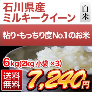 石川県産 ミルキークイーン 白米 6kg(2kg×3袋)【送料無料】【米袋は窒素充填包装】【即日出荷】【生産者指定米】お米 令和7年産 2025年産