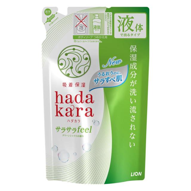 | 検索用文言 | [ライオン]hadakara(ハダカラ) ボディソープ サラサラfeelタイプ グリーンシトラスの香り 詰め替え 340ml (液体ボディソープ 保湿 吸着保湿) |