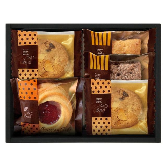 【商品名】 アンドスイーツセレクション 【内容】スクエアパイ プレーン・ショコラ ・ナッツとチョコのざっくりクッキー×各2、ロシアケーキ ブルーベリーサン ・ワッフル プレーン・チョコ ×各1 【賞味期限】常温4ヶ月 (表示期限の半分以上) 【アレルゲン】卵・乳・小麦 【注釈】※お取り寄せの場合、お届けまでに数日掛かる事がございます。※デザイン・内容等が変更になる場合がございます。