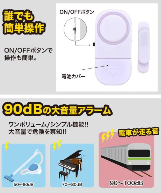 新作 防犯アラーム 90dB 窓用 ドア用 防犯ブザー ブザー センサー 開閉 電池式 大音量 防犯グッズ 玄関 強盗対策 防犯対策 盗難防止 不法侵入 空き巣対策 侵入警報器 屋内 取付簡単 防犯用品 セキュリティ