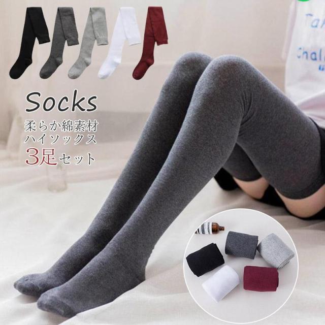 即納【3足セット】サイハイソックス 超ロングソックス 靴下 オーバーニーソックス レディース ゆったり 柔らか 無地 サイハイソックス ハイゲージベタハイソックス 春 夏 秋 綿 蒸れにくい 滑り止め 薄手