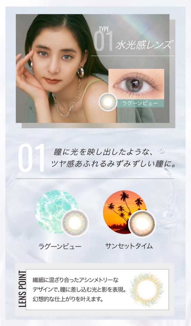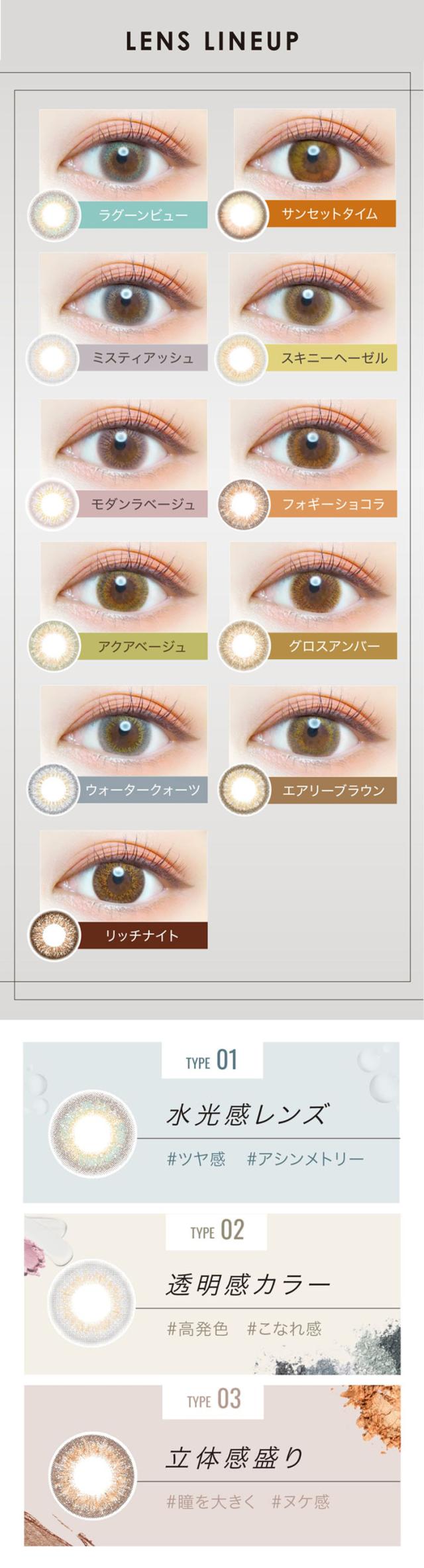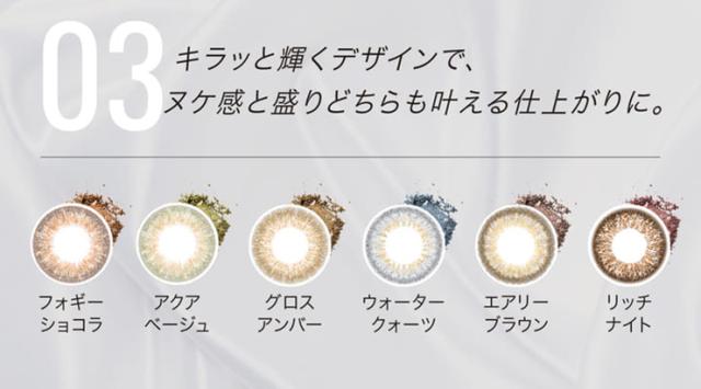 エッジ—な光感と絶妙なニュアンスカラーが瞳に透明感と奥行きを与えます。