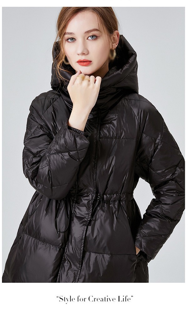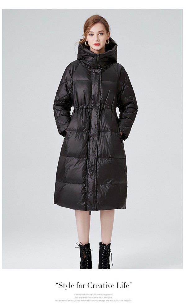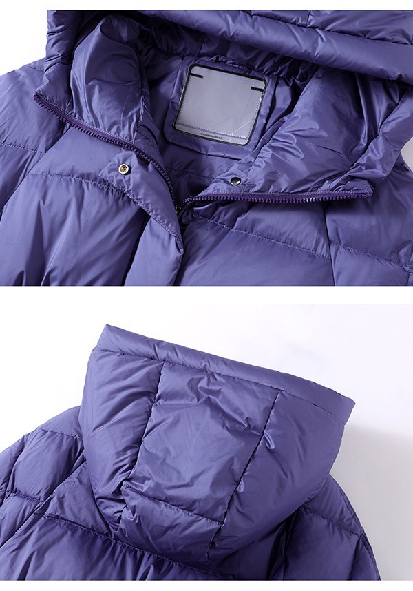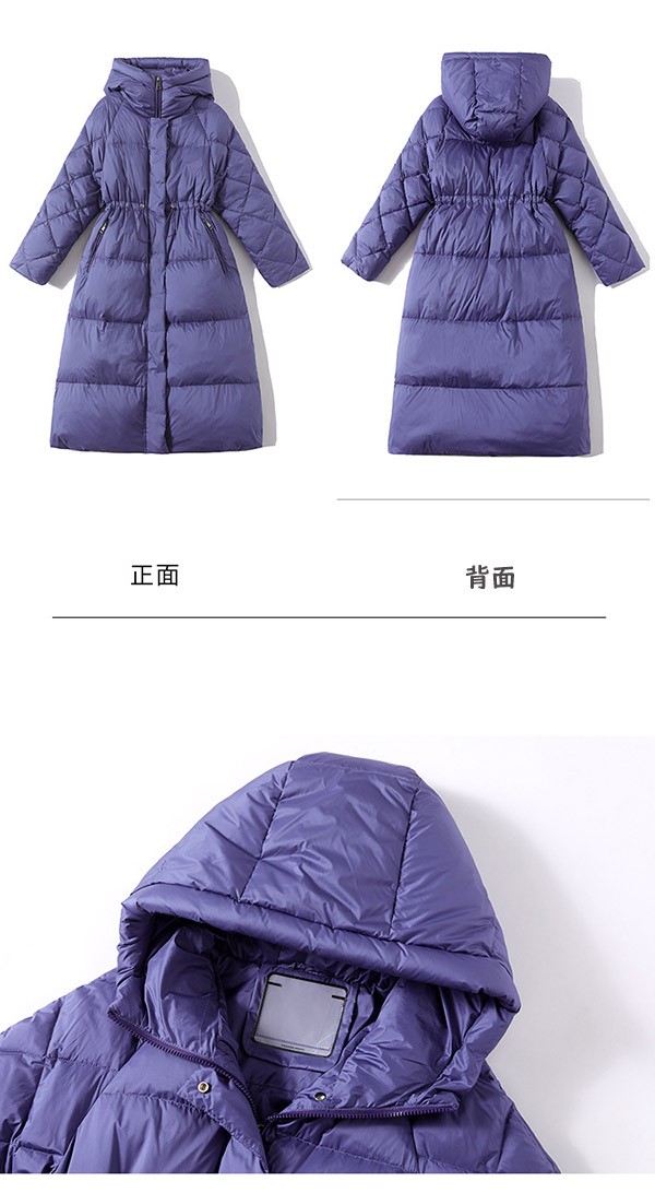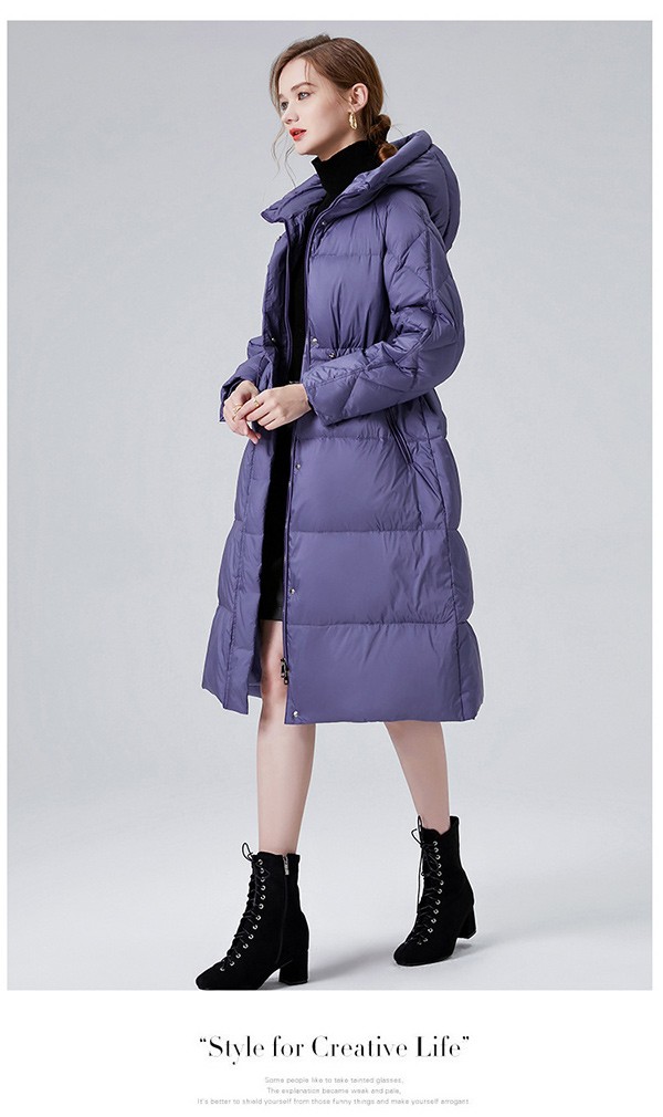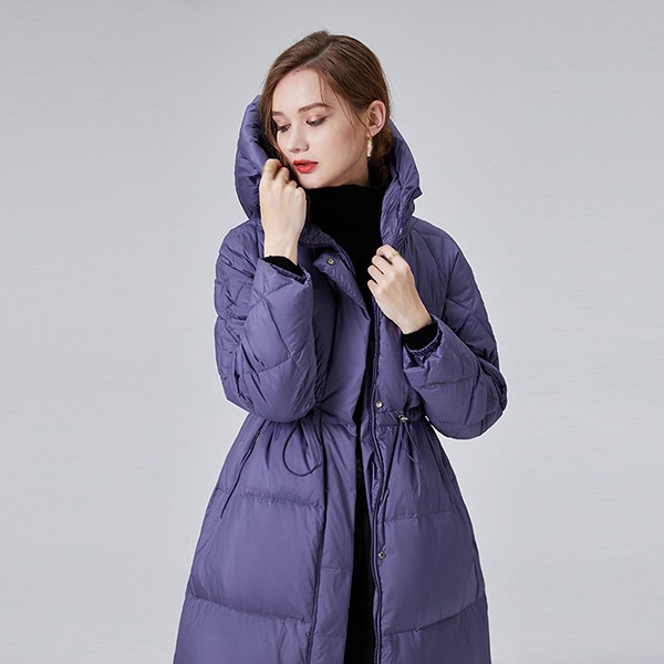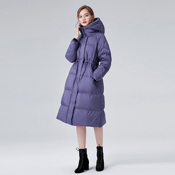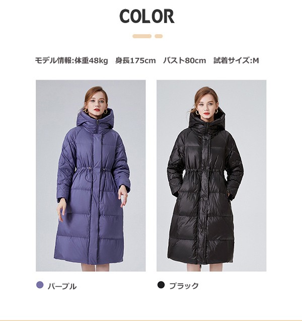 ダウンコート レディース ロング ダウン90% 防寒 フード付き ウエストシェイプ ウエストマーク パープル 紫 ブラック 黒 ハイネック スタンドネック アウター ロングコート ポケット付き 冬 おしゃれ シンプル 寒さ対策 柔らかい 暖かい dv007m5