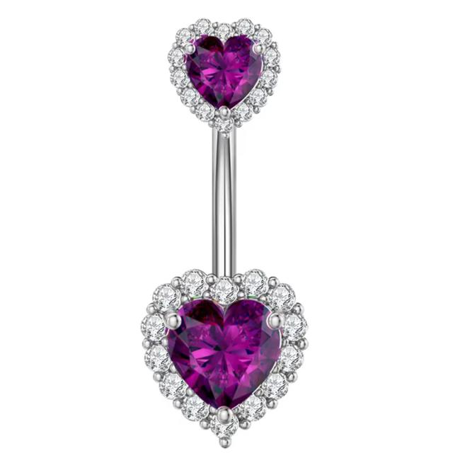[14G ボディピアス ヘソピアス] パープルダブルハートへそピアス 1個販売 14ゲージ メンズ レディース サージカルステンレス316L カーブバーベル バナナバーベル ボディーピアス 臍ピアス プレゼント ギフト 紫色 ジュエル ストーン キュービックジルコニア 石付き キラキラ